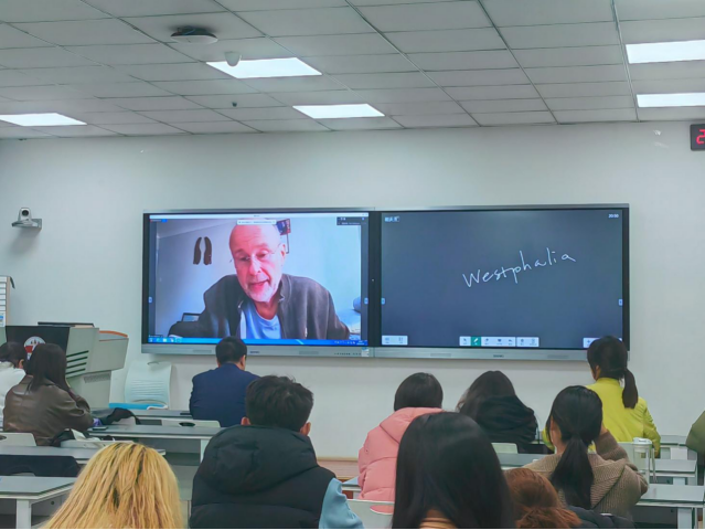 2023年11月9日19时30分,性爱直播 在五号教学楼202教室共同为我校涉外班同学组织安排了一场国际法方面的线上学术讲座。本场讲座由国际法研究院(日内瓦)院士、爱沙尼亚塔林大学教授、前英国伦敦大学国王性爱直播 教授、前爱沙尼亚外交部第一副部长、性爱直播 丝绸之路区域合作与发展法律研究院荣誉研究员和学术顾问瑞纳•穆勒森教授 (Rein Müllerson)主讲,性爱直播 副院长潘俊武教授进行了现场翻译,性爱直播 涉外班学生聆听了讲座。