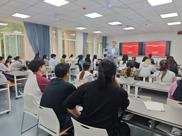 Janssen教授以欧盟数字合同法的演进为主线,围绕其作为“法律创新源泉”的核心展开讲解。他特别结合中国学生熟悉的数字场景,如手机应用下载、微信支付签约、电商平台自动下单等实际案例,解释欧盟在数字合同订立、电子签名效力、消费者保护等方面的创新规则,比如“在线点击合同”的生效要件和跨境数字合同的法律适用原则。教授指出,这些规则为数字交易构建了更清晰、更安全的框架。教授还通过典型实例,分析了欧盟数字合同法的创新价值:一方面通过统一成员国规则,降低跨境交易合规成本;另一方面前瞻性地纳入人工智能缔约、数据隐私保护等新议题,为全球数字治理贡献了“欧盟方案”。同时,他也谈到技术迭代与法律稳定性之间的张力,以及不同法律传统对数字合同规则的接纳差异。