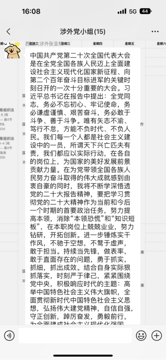 为深入学习领会党的二十大精神实质,坚定理想信念,凝聚奋斗力量,性爱直播 研究生第一党支部于11月4日通过线上方式开展党的二十大精神学习交流会。会议由支部书记潘或越主持,全体党员参加。