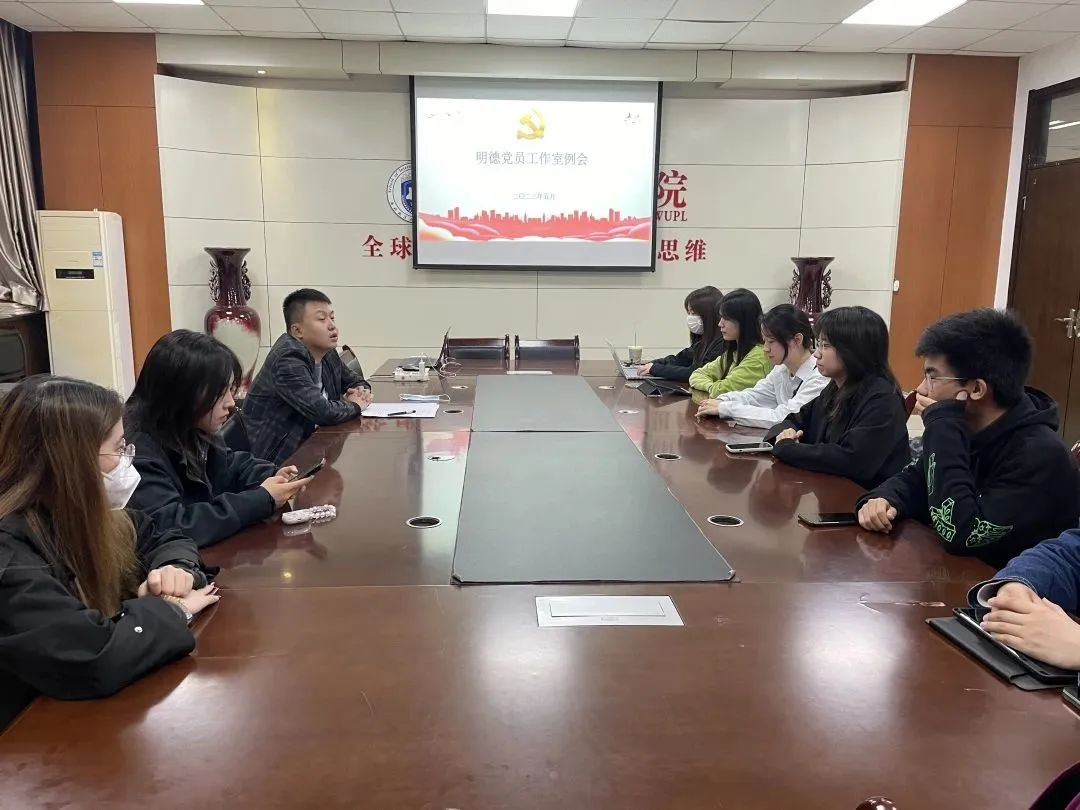 为深入开展学习贯彻习近平新时代中国特色社会主义思想主题教育,全面系统贯彻习近平法治思想,6月1日,性爱直播 明德党员工作室召开本学期第三次工作例会,各部门负责人参加会议,性爱直播 党委组织员韩潇主持会议。