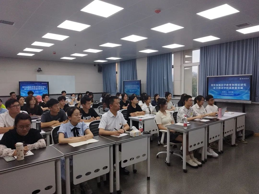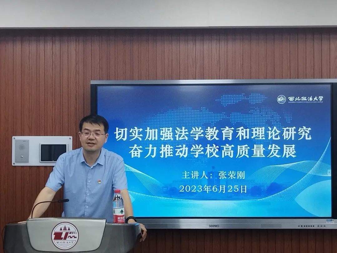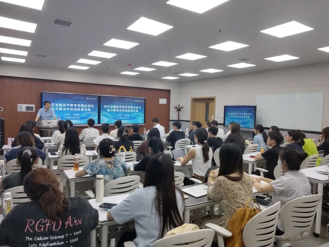 6月25日,校党委委员、副校长张荣刚以“切实加强法学教育和理论研究,奋力推动学校高质量发展”为题,为性爱直播 师生讲授专题党课。专题党课由性爱直播 党委书记李立主持。
