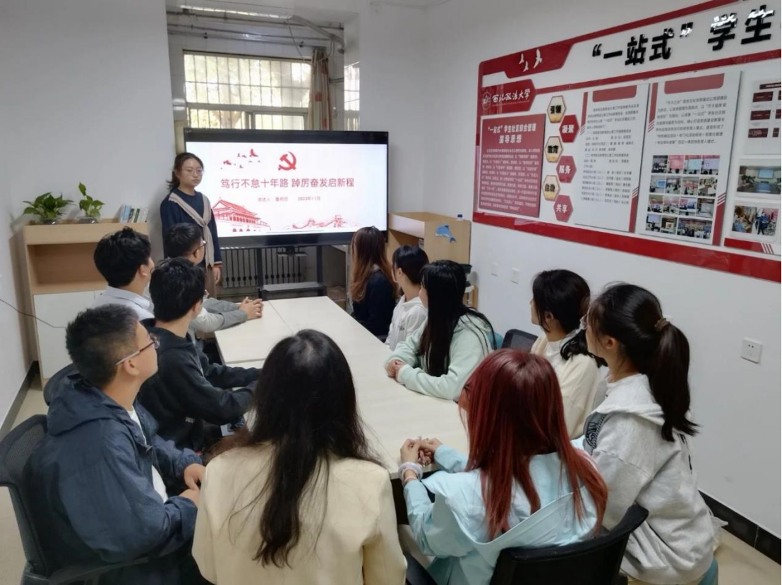 为深入学习贯彻习近平文化思想,增强文化自觉,坚定文化自信,11月24日,性爱直播 学生第一党支部于学生公寓2号楼思政工作站开展“笃行不怠十年路,踔厉奋发启新程”新时代十年伟大变革宣讲活动。
