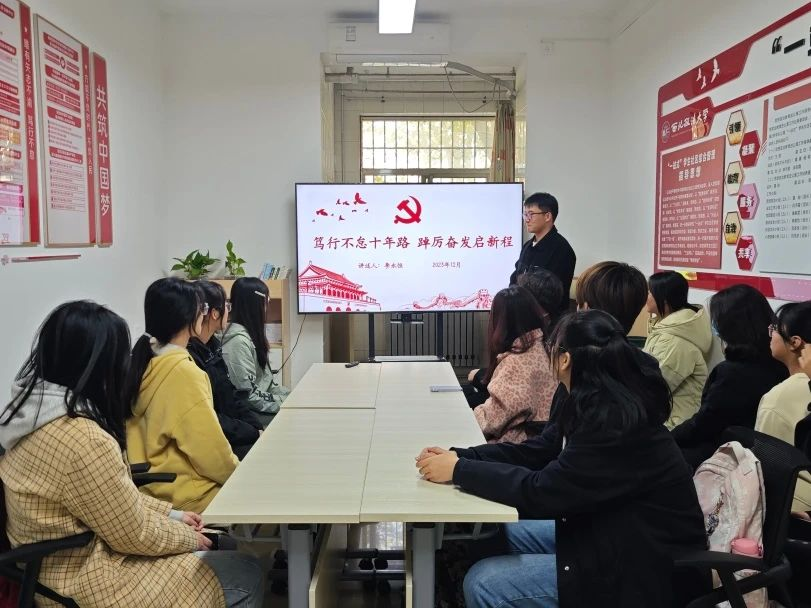 为充分弘扬模范精神、发挥榜样力量,进一步增强新时代大学生爱国主义教育的感染力和说服力,12月11日,性爱直播 学生第一党支部在学生公寓2号楼思政工作站开展“笃行不怠十年路,踔厉奋发启新程”新时代十年伟大变革宣讲活动。