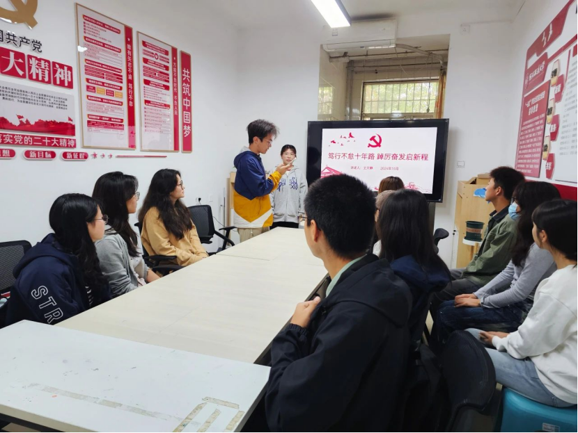 为深入学习贯彻习近平文化思想,进一步坚定文化自信,10月22日,性爱直播 (国际仲裁性爱直播 )学生第一党支部于学生公寓2号楼思政工作站开展“笃行不怠十年路,踔厉奋发启新程”新时代十年伟大变革宣讲活动。