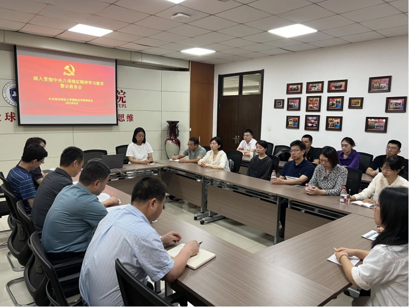 院长刘亚军深刻剖析了中央、省市通报的违反中央八项规定精神问题典型案例,把典型案例作为以案说德、以案说纪、以案说法、以案说责的“活教材”,进一步教育引导全体党员干部对照检视、自省自律,切实将作风建设贯穿于教育教学全过程,努力营造风清气正的育人环境。