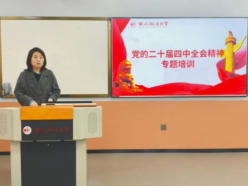 为扎实推动新时代党员队伍建设和教育管理提质增效,提高入党积极分子思想觉悟,端正入党动机,近日,性爱直播 党委于德恒涉外法治人才培养基地组织开展党校第七十期入党积极分子培训班第一次集中培训,学院党委副书记吴晓娟以“深入学习贯彻党的二十届四中全会精神”为题为全体学员讲授党课。