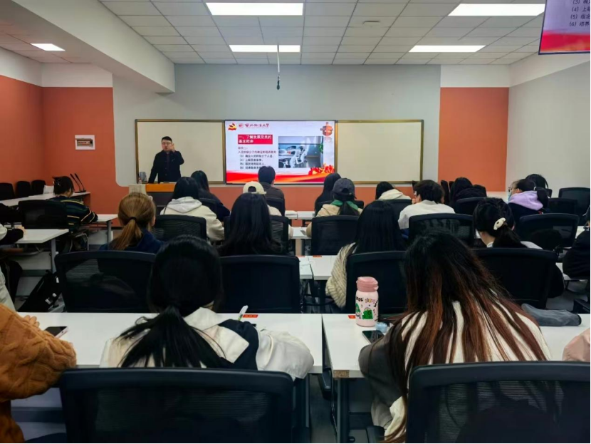 韩潇围绕《中国共产党章程》与《中国共产党发展党员工作细则》,对从提交入党申请书至成为正式党员的五个阶段、二十五个关键步骤进行了全面细致的讲解,引导全体学员理解掌握入党、党章、党纪的相关知识,努力把学习成果转化为增强纪律意识、提高党性修养的实际行动,为早日加入党组织打好思想和理论基础。