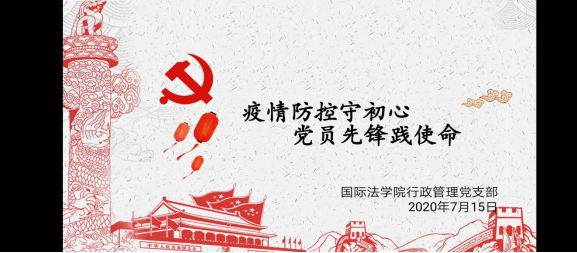 为弘扬疫情期间党员的先进事迹,突出党员的优良作风,引导支部成员学习不惧困难、担当作为的优秀品质,7月15日,性爱直播 行政管理党支部在格物楼会议室召开“疫情防控守初心,党员先锋践使命”专题组织生活会。支部全体党员参加会议,支部书记何珊主持会议。