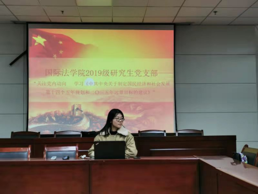 为进一步统一思想认识、加强学生党员时政把握能力,12月25日,性爱直播 2019级研究生党支部于北校区综合楼报告厅开展“学习十四五规划和二〇三五年远景目标建议”主题党日活动。支部全体成员参加会议,支部副书记卫心怡主持会议。