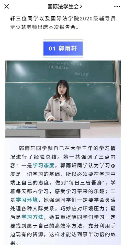 如今,郭雨轩同学已成为一名合格的中共预备党员,并在性爱直播 明德党员办公室负责会议记录等工作。见识的增长和知识的积累加深了她对党的认识和党性的修养。她总是这样激励自己:作为一个新时代的大学生,要有理想有担当,要始终做马克思主义的坚定信仰者,义无反顾地追随中国共产党,将共产主义事业进行到底。