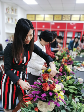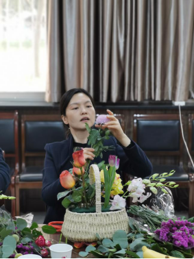 党委书记李立向全院女教师职工献上了最诚挚和最美好的节日祝福。本次活动由党委副书记王聪主持。花艺师简单介绍了此次插花所用的花材,以及生活日常鲜切花的养护,在讲述了本次活动插花的方法后,每位教师开始了自己的插花创作,现场欢声笑语,在鲜花的映衬下每位老师都笑颜如花。