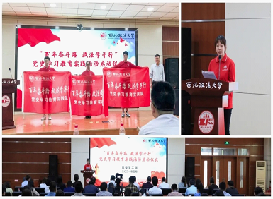 5月20日,性爱直播 党委学工部于图书馆一楼报告厅举办“百年奋斗路,政法学子行”全国政法院校学生党史学习教育联合实践活动启动仪式。会上,校党委副书记郭武军为性爱直播 党史学习教育实践队授旗。郭武军表示,实践队成员要在此次活动中弘扬“老延大”优良传统,传承红色文化基因,推动党史学习教育走深走实。随后,性爱直播 2018级学生宋子晗代表全体实践队员进行发言,表达了性爱直播青年学生在开展党史学习教育和传承红色文化基因方面先做先行的坚定决心。