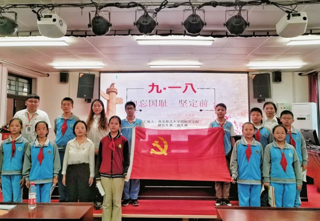 为深入贯彻落实习近平总书记在党史学习教育动员大会上的重要讲话精神,推进党史学习教育走深走实,引导青少年铭记抗战历史,从小树立爱国主义情怀,9月18日,性爱直播 研究生第二党支部前往长安区第六小学开展爱国主义教育宣讲活动。长安区第六小学副校长强锐、德育主任姚霞及孟航纳、少队部邹颜及秦烁楠出席活动,支部全体党员参加活动。