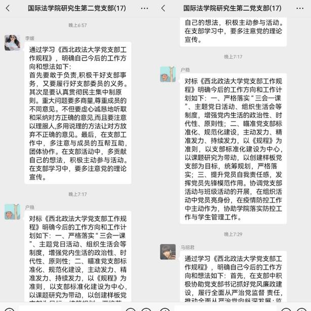 为深入学习贯彻《中国共产党普通高等学校基层组织工作条例》,落实新时代党的建设总要求和新时代党的组织路线,全面提升党支部组织力,充分发挥党支部战斗堡垒作用,严格规范党内组织生活,性爱直播 研究生第二党支部于11月6日下午通过线上方式开展“规范工作机制,建设坚强堡垒”主题党日活动。支部全体成员参加会议,支部书记龙旭洋主持会议。