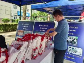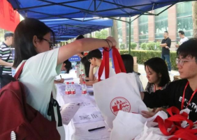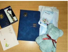 (志愿者发放新生大礼包,包含笔记本、优盘、卡套、口罩、心理伴手礼等学习、生活物品)