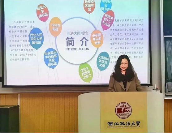 李琳老师为大家介绍了入馆须知,同时介绍了图书馆的历史沿革及典藏分布,并指导同学们如何在图书馆借书、还书、如何利用数字资源让今后信息检索能力的学习更加便利。图书馆丰富的典藏吸引了同学们的注意力,极大地激发了同学们的学习热情。通过李琳老师的讲解,同学们很快对如何利用西法大图书馆学习资源有所了解,对于更好地规划大学生活和日后增强自身能力都有极大的帮助。