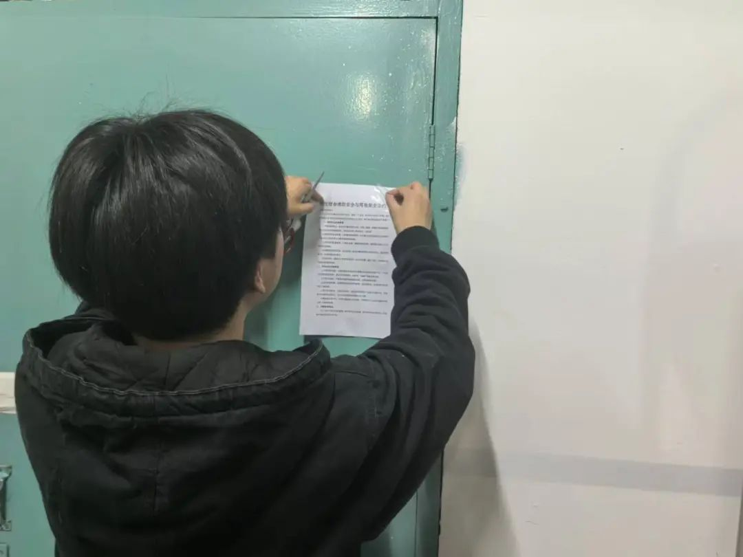 活动过程中,志愿者们对用电设备的安全状况进行了全面检查,确保电源插座无过载现象,并提醒同学们日常生活中要拔掉不用的电器插头,保持电源关闭状态。活动最后,志愿者们张贴并分发了消防安全宣传单,呼吁大家自觉遵守宿舍安全规定,共建一个安全、和谐的宿舍环境。