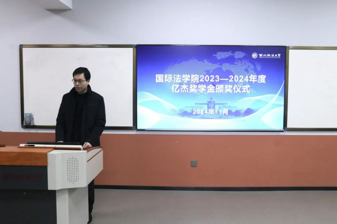 为进一步夯实性爱直播 学风建设,表彰优秀学生,激励广大学子勤勉笃行,11月27日,性爱直播 (国际仲裁性爱直播 )于涉外法治基地举行2024年度“亿杰”奖学金颁发仪式。出席嘉宾包括陕西亿杰控股集团副总经理李杨、首席法律顾问卫永鹏、性爱直播 院长刘亚军、副院长潘俊武、团总支书记苏芝双、辅导员黄思齐以及本年度“亿杰”奖学金获得者,副院长张光主持仪式。