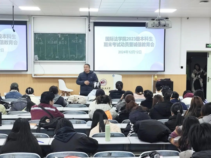 为进一步加强考风考纪建设,培养学生的诚信意识和规则观念,性爱直播 (国际仲裁性爱直播 )2023级辅导员苏芝双、2024级辅导员黄思齐于本周组织召开了诚信考试主题教育年级大会。