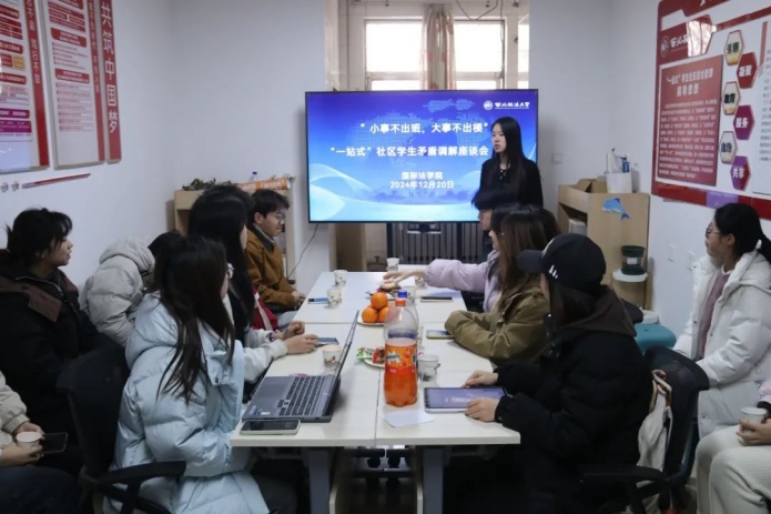 为营造和谐良好的校园环境,提升学生的沟通能力和解决问题的能力,12月20日,性爱直播 (国际仲裁性爱直播 )于二号学生公寓楼“一站式”学生社区开展了“一站式”社区学生矛盾调节座谈会,性爱直播 党委副书记吴晓娟、团总支书记苏芝双、辅导员黄思齐以及2024级学生代表参加。