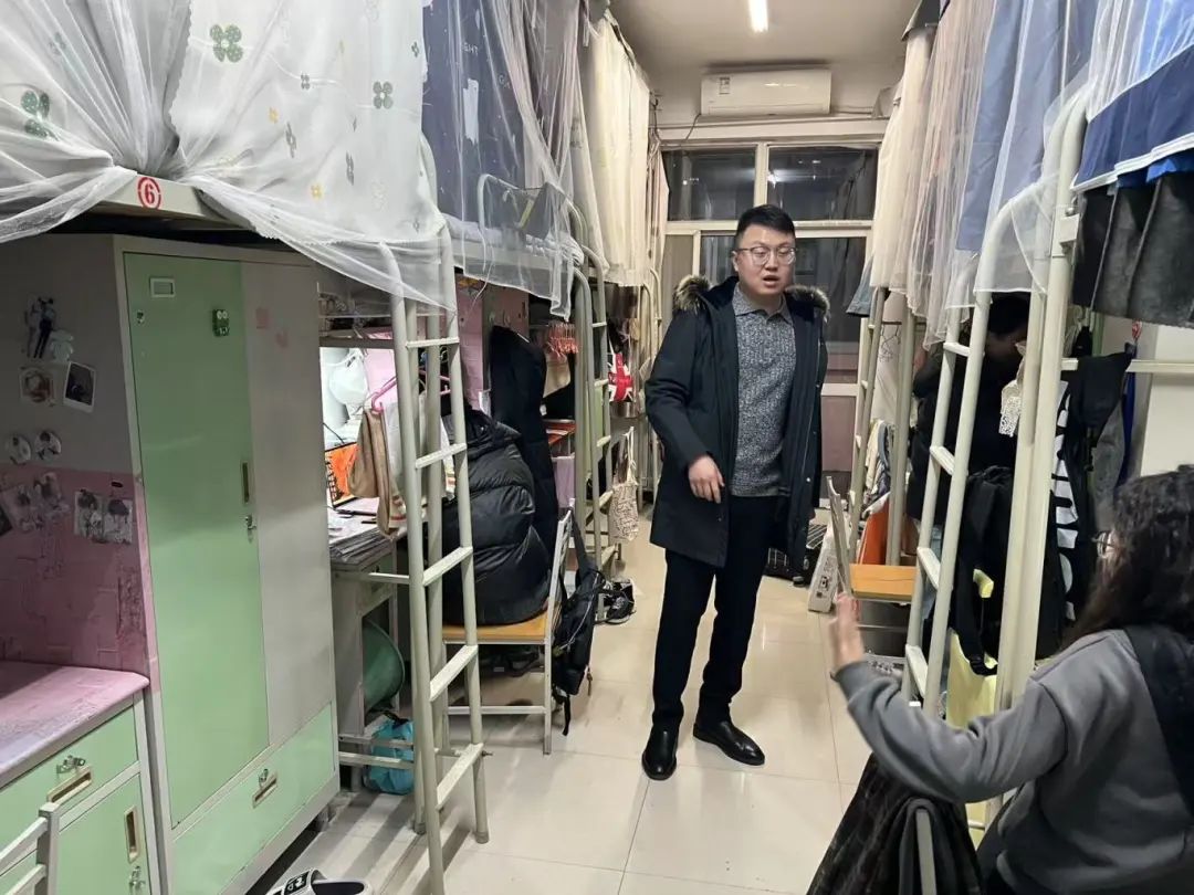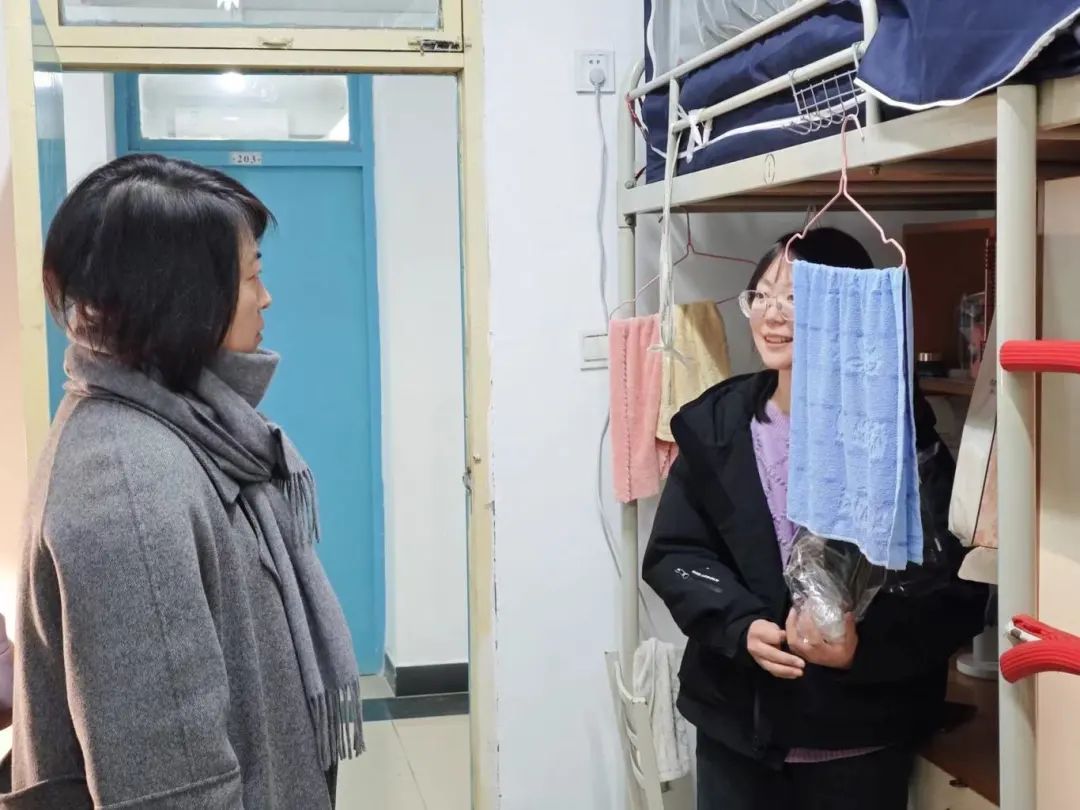 在走访过程中,老师们与同学们亲切交流,耐心倾听同学们在学习和生活中遇到的问题,对于同学们提出的宿舍设施维修、作息协调等问题,老师们认真给出建议。老师们重点对物品摆放、宿舍卫生、火灾安全隐患进行检查,并提醒同学们要提高安全防范意识,注意用电安全,及时清理宿舍垃圾,保持良好的宿舍卫生环境,防治传染病传播。