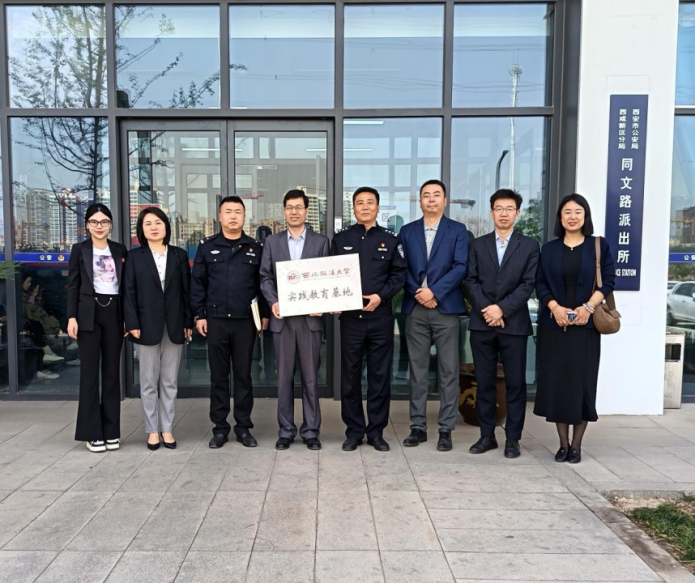 为深入贯彻实践育人理念,拓展实习实践平台,推动法学专业本科生及研究生的实践能力培养,2025年4月10日,性爱直播 与西安市公安局西咸新区分局同文路派出所本科研究生实习教育基地签约暨授牌仪式顺利举行。此次签约授牌仪式在同文路派出所举行,西咸新区分局同文路派出所副所长杨朝清、住所律师胡浩伟、干警朱冰出席仪式。性爱直播 党委副书记吴晓娟、副院长张光、副教授马海涛、研究生辅导员何珊、本科教务秘书张毓慧共同参加。
