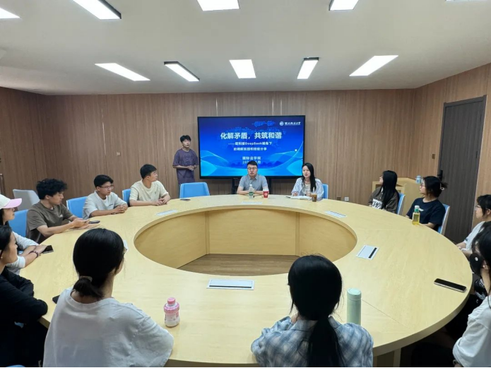 为推动矛盾转化为成长契机,共建和谐校园生态,青枫调解室于5月16日在枫桥“一站式”学生社区学生管理中心召开“校园调解实践与学生成长经验分享会”,由调解室干事李印豪主持、特邀嘉宾院党委组织员韩潇、指导老师黄思齐、2024级学生代表参加。