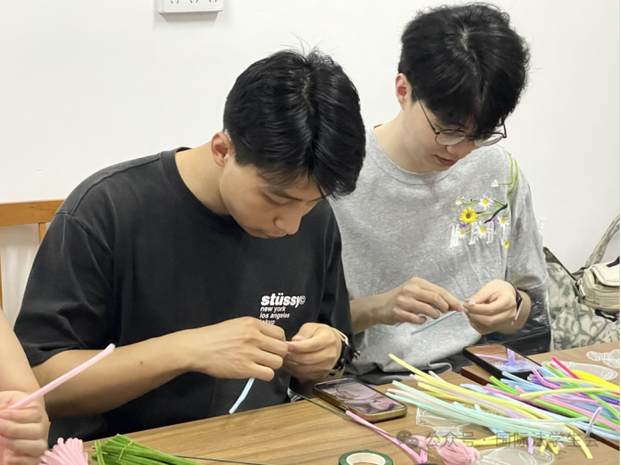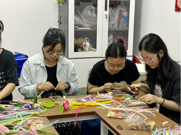 在心理健康知识讲座环节,辅导员何珊结合典型案例,深入剖析研究生群体常见的心理调适问题,并示范压力纾解技巧。实践环节中,同学们以扭扭棒为核心材料,辅以丝带、串珠等装饰,制作出郁金香、薰衣草、小雏菊等二十余种创意花卉。活动现场播放心理减压音乐,营造出温馨的创作氛围,不少同学在制作过程中自发分享学业生活感悟。