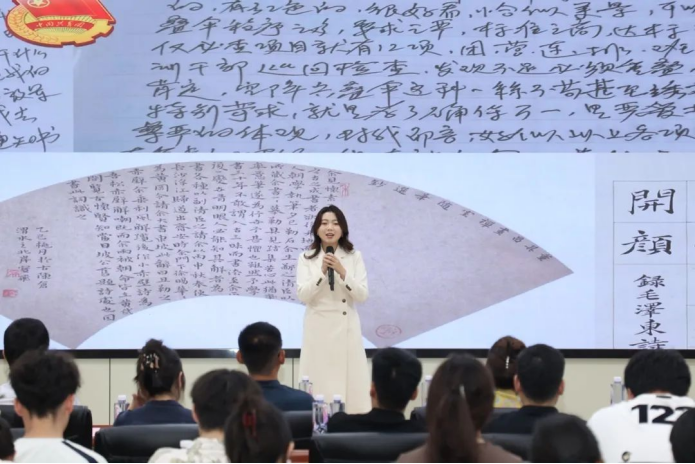 演讲中,她以黄进教授的学术生涯为例,讲述“以法为器,以理为刃”的坚守——36 小时译出《海牙信托公约》,手抄300份案例实证立法研讨,六十年如一日凌晨写作……高远的理想是扎根大地的树,需要扎实的学识与始终向上的心。