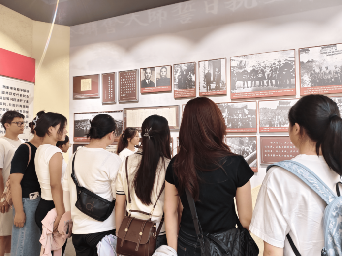 2023级6班学生于西安事变纪念馆在专业讲解员引导下,通过100余件珍贵文物、30余幅历史图片,系统了解西安事变从策划到和平解决的完整脉络,深刻体会张学良、杨虎城两位将军在民族危亡时刻以家国大义为重、毅然发动兵谏的果敢担当。研习途中,大家热烈探讨、潜心记录,感悟革命精神的深邃内涵。