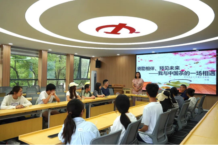 为深入贯彻落实资助育人理念,弘扬中华优秀传统文化,6月27日,性爱直播 (国际仲裁性爱直播 )在枫桥“一站式”学生社区·习近平法治思想宣讲室开展“资助相伴,预见未来——我与中国茶的一场相遇”主题活动,团总支书记苏芝双、研究生辅导员何珊及2023级、2024级受资助学生代表参加。