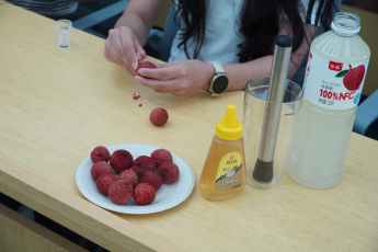 为体验茶文化的多样性,何珊带领同学们制作了荔枝果茶。大家将新鲜的荔枝剥去外壳,取出果肉,再与绿茶充分混合,同学们在制作过程中相互交流制作心得,分享创意想法,体验到了制作的乐趣,培养了他们的实践能力和创造力。荔枝果茶的制作是传统茶饮与现代创意的巧妙融合,碰撞出独特的味觉体验,进一步加深了大家对茶文化创新发展的理解。