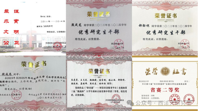 在课外实践中,宿舍成员通过各自努力,在不同领域均取得了斐然的成绩。郝劲凯同学凭借其深厚的英文功底和勤奋的努力,荣获了第十三届“中国WTO模拟法庭”竞赛全国二等奖、申诉方最佳文书奖、被申诉方文书二等奖,以及国家留学基金委全额奖学金,同时,郝同学凭借其复合型的学科背景,还取得了第十届“东方财富杯”全国大学生金融挑战赛省赛二等奖。段成龙同学在深耕学术领域,不仅发表了一篇学术论文,而且参与了一项课题,作为一名出色的国际法学研究生,他还获得全国大学生翻译大赛国家级三等奖。杨泽言同学在学业上不断丰富自己的知识领域和学识眼界,攻读并取得了美国圣路易斯华盛顿大学法学硕士学位,并且代表学校参加外交部国际组织人才遴选。靳汶谚同学精耕法律实践领域,参加了包括“安理杯”法律文书大赛,“西仲杯”国际商事仲裁模拟仲裁庭竞赛在内的多项法律实践比赛。此外,为了将学术理论落到实处,他还在法院、律所进行了数月实习。