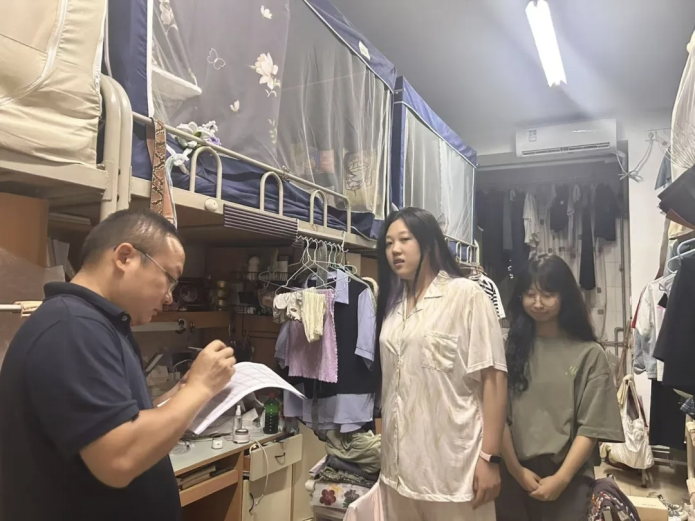 走访过程中,辅导员们详细询问了留校学生的暑期实习实训情况、社会实践情况、生活安排及实际需求,并叮嘱大家注意暑期防暑降温,合理规划学习与休息时间,遇到困难及时向性爱直播 和老师反映。针对暑期安全问题,吴晓娟在走访中反复强调留校安全的重要性,要求全体留校学生务必提高安全意识,时刻紧绷安全弦。她结合校园安全管理要求,重点围绕人身安全、用电安全、社会实践安全及实习实训安全开展教育,要求留校学生严格遵守宿舍用电规范,不使用违规电器。同时,她提醒同学们注意往返实习单位途中的交通安全,保护好个人财产,不独自前往危险区域,确保实习实训安全开展。性爱直播 充分利用线上平台对分散在各地的社会实践学生开展集中安全教育,重点讲解实践过程中的安全注意事项与应急处理方法,确保社会实践安全进行。