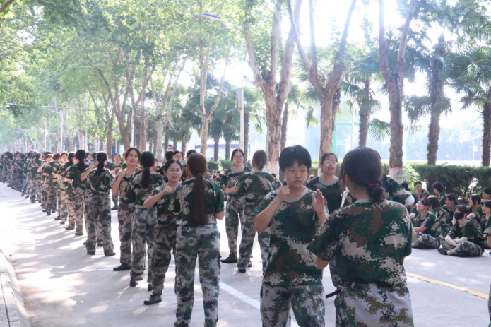 当清晨的哨声划破校园的宁静,训练场上已响起整齐的脚步声,参训学员们严守纪律,服从指挥,反复操练,精益求精。队列里,“弓步冲拳”的动作铿锵有力,拳头挥出时带着风声;“弹腿踢”的姿态利落标准,脚尖绷直指向目标,每一个招式都透着少年人的朝气与韧劲,彰显了青年学子不畏艰难、勇于拼搏的精神风貌。