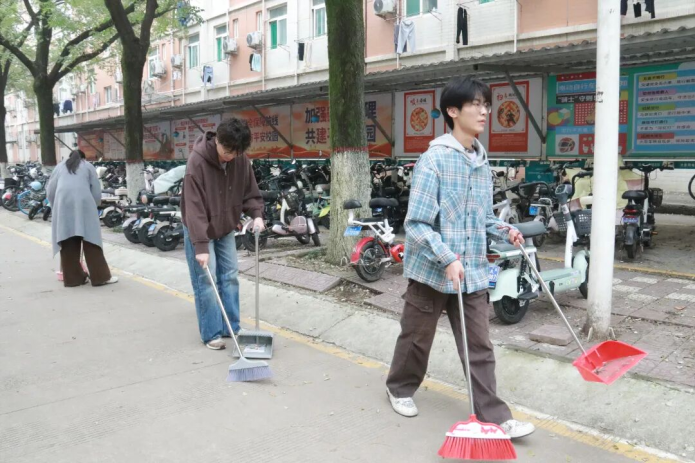 活动期间,同学们分工明确、通力协作,对主干道绿化带及公寓周边卫生死角展开了清理。大家手持清洁工具,认真清扫路面落叶,细致捡拾绿化带内垃圾,用心擦拭公共设施表面。同学们用实际行动诠释了吃苦耐劳、勤勉务实的精神品质。经过有序高效的集体劳动,校园环境焕然一新,公共区域整洁有序。