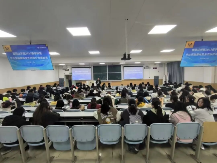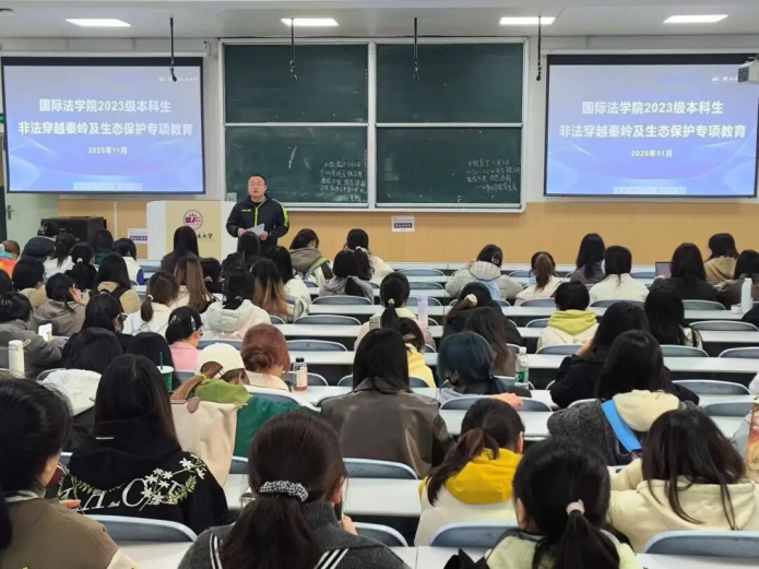 为深入贯彻习近平生态文明思想,切实筑牢学生生命安全防线,引导学生树立正确的自然观与生命观,11月3日,性爱直播 (国际仲裁学院)开展禁止非法穿越秦岭及生态保护主题教育活动,2023级辅导员苏芝双主持,2023级全体学生参加。