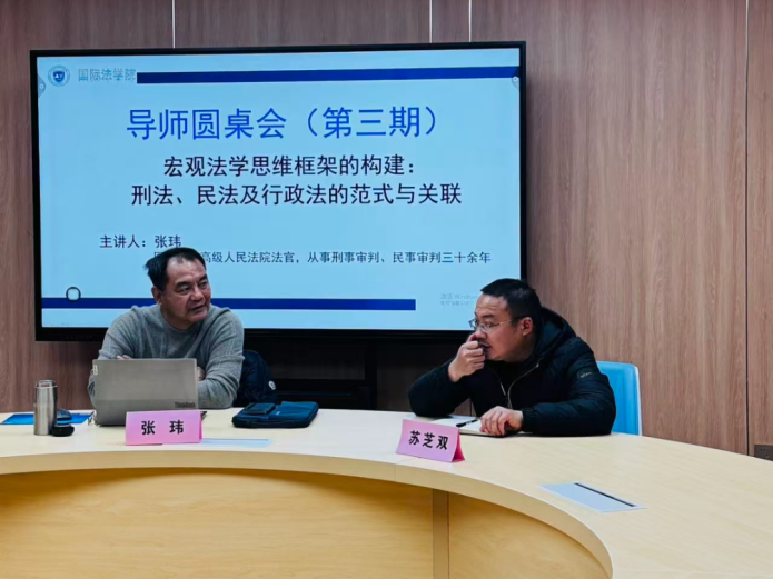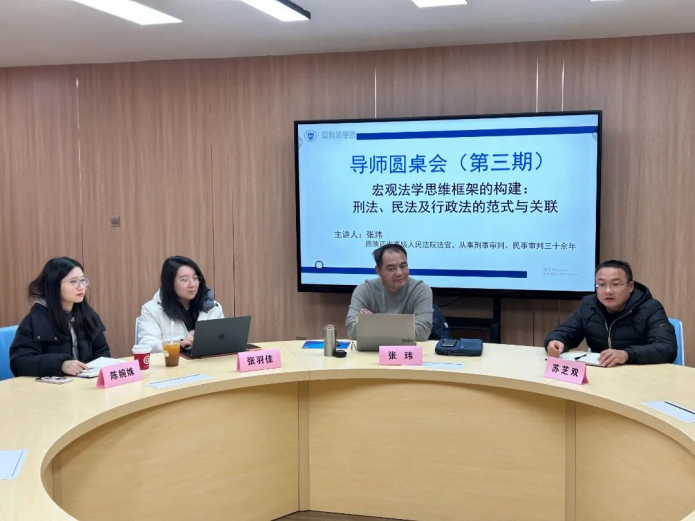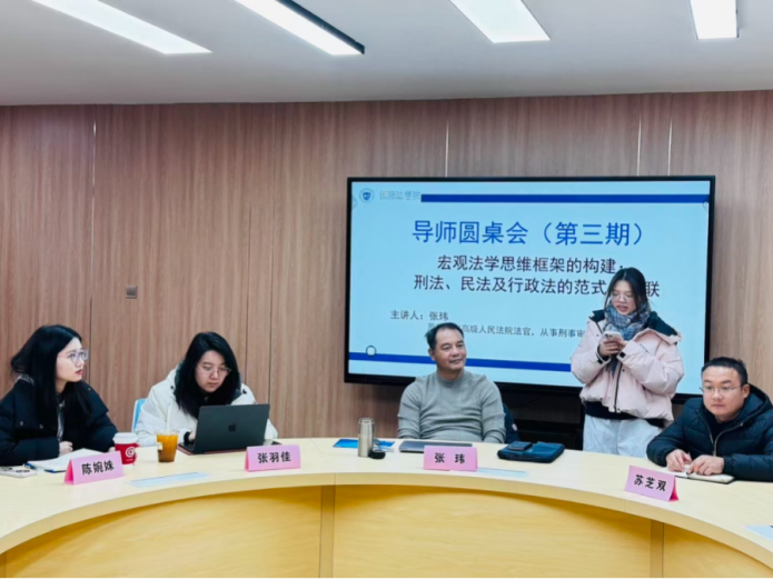 为帮助学生构建系统的法学思维框架,培养跨部门法综合分析能力,夯实专业学习基础,性爱直播 (国际仲裁学院)于11月21日在学生成长发展中心朋辈导师室开展了导师圆桌会系列活动,原陕西省高级人民法院法官张玮主讲,本科生导师陈婉姝、张羽佳,学院团总支书记苏芝双,2025级本科生代表参加。