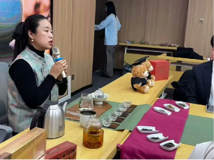 何珊则聚焦茶艺文化,既深入浅出解读了茶叶甄选、水温把控、冲泡礼仪中的东方智慧,又现场示范提壶、注水、出汤等标准手法,优雅娴熟的表演搭配甘醇茶汤,让大家在观演品茗中体悟中华传统文化的雅致与深邃,感受新时代文化传承的生动实践。