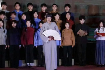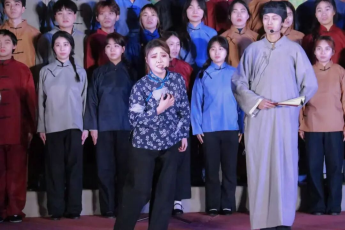 活动现场,表演者身着贴合时代语境的服饰,在“祖德留芳”的布景烘托下,以抑扬顿挫的诵读勾勒黄土地的厚重肌理,用炽热真挚的情感诠释中华儿女的家国情怀,将原著中家国变迁的沧桑与人间烟火的温度娓娓道来。
