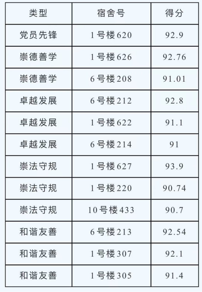 根据优秀宿舍长报名情况及答辩评分,同时推选出三名优秀宿舍长: