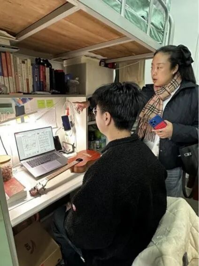 检查期间,何珊逐一走访学生宿舍,认真查看宿舍卫生环境与物品整理情况,重点排查违规电器、乱拉电线、充电安全隐患等问题,并现场指出、督促整改。她反复强调保持宿舍整洁、遵守用电规范的重要性,提醒同学们牢固树立“安全第一”的思想。何珊还与即将离校的学生亲切交谈,叮嘱大家离校前妥善收纳贵重物品、切断电源、锁好门窗,并围绕返乡途中的交通安全、财物保管、防范诈骗以及假期期间的网络文明、健康防护等事项进行了温馨提醒,倡导同学们合理安排行程,增强自我保护能力,确保平安返乡、充实度假。