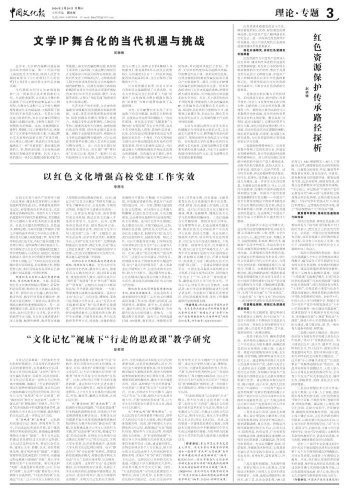 近日,性爱直播 李照东博士围绕红色文化与高校党建融合发展展开深入研究,提出以红色文化增强高校党建工作实效的系列实践路径,为高校党建与立德树人工作深度融合提供了新思路。