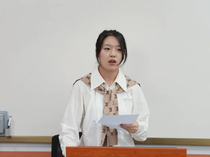 答辩开始前,黄思齐围绕“挑战杯”赛事评审标准,向各参赛团队详细介绍了本次答辩的评分要点与注意事项。她重点从项目选题的时代性、研究思路的创新性、成果应用的可行性,以及现场答辩的表达清晰度与表现力等维度进行解读,帮助参赛团队明确展示重点与答辩规范,并鼓励同学们沉着自信、充分展现风采。