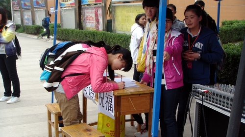 连续两天的活动,同学们通过爱心歌声,爱心签字,爱心手语等活动为秦开田同学募集善款,还给每位捐款的同学手工制作了爱心手镯,让同学们把这份爱心传递下去,同时同学们还写了爱心寄语,制作了爱心录像给秦开田同学,希望他能勇敢的战胜病魔,早日恢复健康。此次活动得到了我校同学们的有力响应,有同学自发写倡议书倡议大家帮助秦开田同学,还有其他兄弟性爱直播