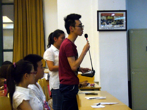 交流上,主持人对到场的各位学长学姐做了简单的介绍,让到场的同学对他们有个初步的了解。以高分通过司考,并在考研中表现出色的李彦霖同学首先分享自己的经验,他主要谈到了司考的备考,合理安排考研与思考的时间,以及如何选择和运用资料等方面问题。接着,以优异成绩考入北京大学的陈雅萍同学向大家讲述了自己的考研经历和在司考考研过程中遇到的一系列问题。考入武汉大学的王阳同学,告诉现场的学弟学妹,做任何事情都要有坚持到底的毅力、绝不放弃的恒心、勇于挑战的决心。随后,张润同学和姚玮澜同学告诉同学们,要相互学习、善于学习,还要扬长避短,选择适合自己的专业和学校。最后,田瑾和张楠同学也分别与大家交流,向大家介绍了一些与考研、司考有关的资料,使同学们颇为收益。