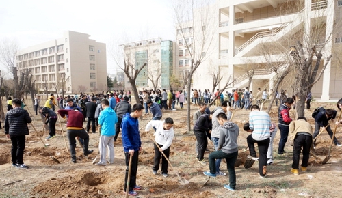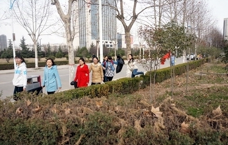当天下午2点10分,志愿者们按男女生被分为两个小组,男生组主要是参加植树活动,女生组则负责指定区域内的清洁工作。同学们都对各自的任务表现出了极大的热情,积极主动地完成自己的任务。初春的午后,暖意融融,男生们热火朝天地挖坑种树,用这种方式来践行雷锋精神。而进行清理校园垃圾活动的女生们不怕脏不怕累,她们勤劳的身影让这个春光明媚的三月变得更加美丽。
