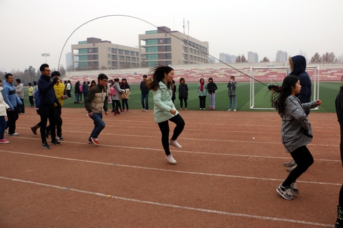 此次运动会由大一大二全体同学参加,共设五个项目,分别是越野、跳大绳、自行车慢骑、拔河和趣味组合接力。