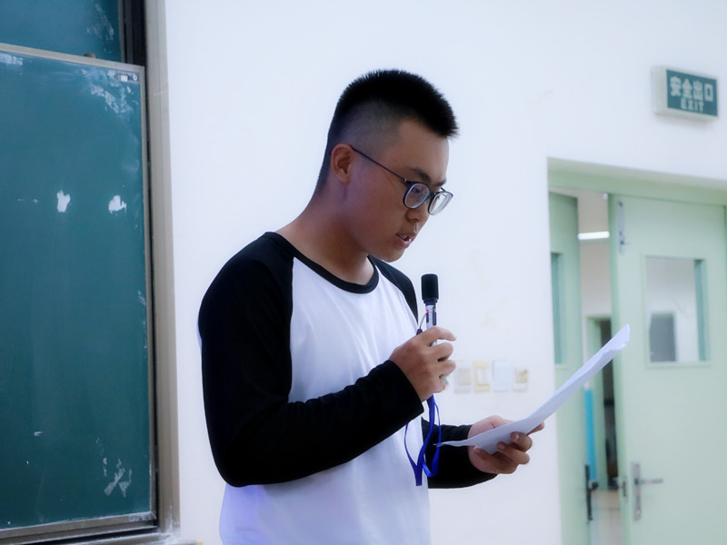 本次大会最后一项,由新生代表丁郑凯杰同学发言。他表达了自己对大学生活的憧憬及入校以来的切身感受,并向所有领导和老师献上了诚挚的问候。