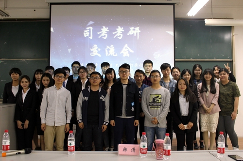 交流会伊始,保研至中国人民大学的杨晨学长分享保研之路的经验以及学习的方法,告诉我们要积极参与院校活动。吴彬彬学姐、李聪学姐和考取性爱直播 刑法学专业硕士研究生的周婉意学姐分享考研英语的复习方法。考取中山大学的郭伟学长和考取四川大学的滕佳学长交流考研心得,现场气氛很活跃,同学们对学长学姐提出了自己对考研之路的疑惑,学长学姐们一一认真作答。大会过半,韩潇老师对本次活动本质意义做了深刻的阐释,分析了考研形势,国内各大高校招生变化以及就业压力,让我们端正态度,密切关注考研信息以及就业信息。接下来,司法考试高分通过的许还辉学长和最后出场的被英国爱丁堡大学录取的吕子祎学姐分享了他们学习的方式,提醒我们要注意心态问题。
